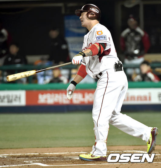 28일 오후 서울 목동구장에서 열린 한국야쿠르트 세븐 프로야구 플레이오프 2차전 넥센과 LG의 경기,2회말 선투타자로 나선 박병호가 좌익수 플라이로 물러나며 아쉬워 하고 있다.