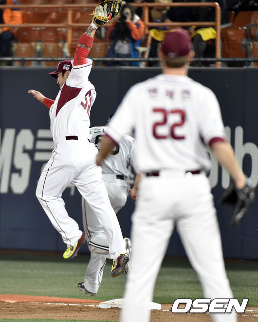 28일 오후 서울 목동구장에서 열린 한국야쿠르트 세븐 프로야구 플레이오프 2차전 넥센과 LG의 경기, 5회초 무사 스나이더가 내야안타로 진루하고 있다.