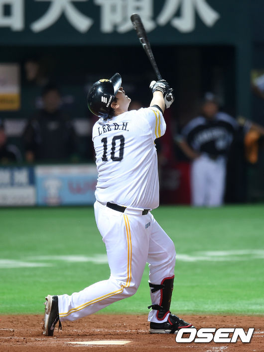 5회말 무사에서 소프트뱅크 이대호가 외야플라이로 물러나고 있다.