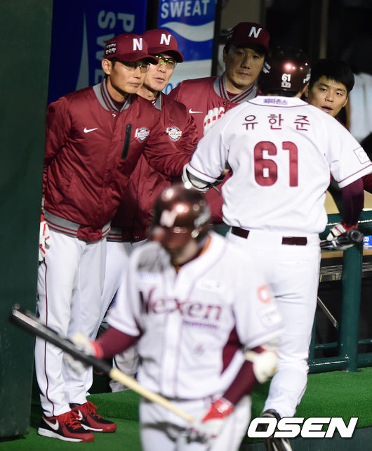 [OSEN=목동, 지형준기자] 28일 오후 서울 목동구장에서 열린 '2014 한국야쿠르트 세븐 프로야구' 넥센 히어로즈와 LG 트윈스의 플레이오프 2차전, 7회말 1사에서 넥센 유한준이 LG 신정락을 상대로 솔로포를 날리고 더그아웃에서 염경엽 감독과 하이파이브를 하고 있다.