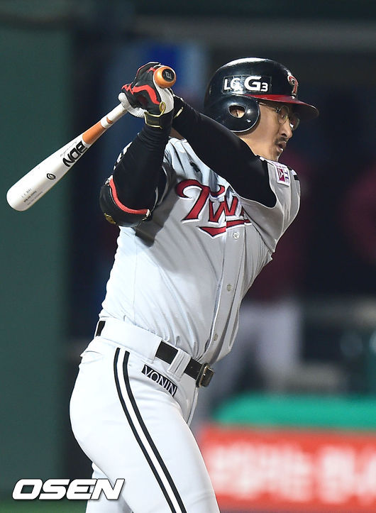28일 오후 서울 목동구장에서 열린 한국야쿠르트 세븐 프로야구 플레이오프 2차전 넥센과 LG의 경기,8회초 1사 만루 LG 박용택이 1타점 적시타를 날리고 있다.