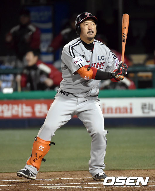 28일 오후 서울 목동구장에서 열린 한국야쿠르트 세븐 프로야구 플레이오프 2차전 넥센과 LG의 경기,8회초 1사 만루 이병규가 밀어내기 볼넷을 얻어내고 있다.
