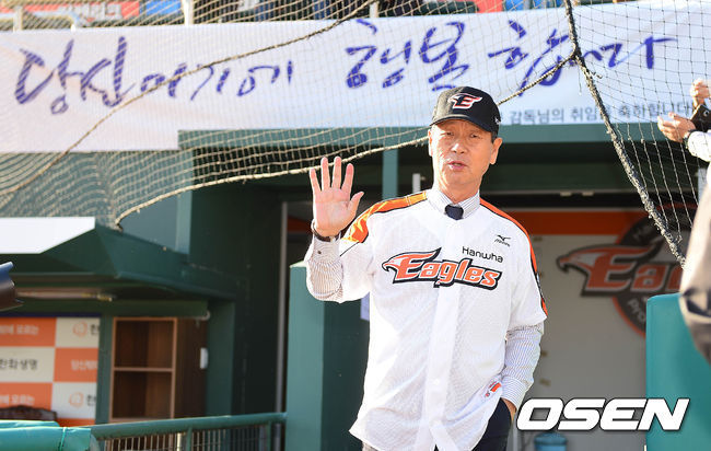 김 감독은 28일 오후 3시 대전구장에서 공식 취임식 행사를 가졌다. 정승진 사장을 비롯한 구단 관계자들, 선수단, 취재진과 몇몇 팬들이 모인 가운데 진행된 이날 행사에서 김 감독은 취임사와 기자회견을 통해 선수단에 강한 개혁 메시지를 전달했다.