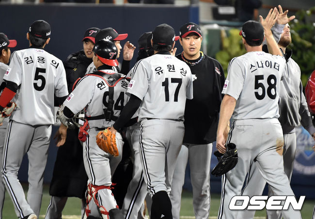 승리를 거둔 LG선수들이 승리의 기쁨을 나누고 있다./spjj@osen.co.kr