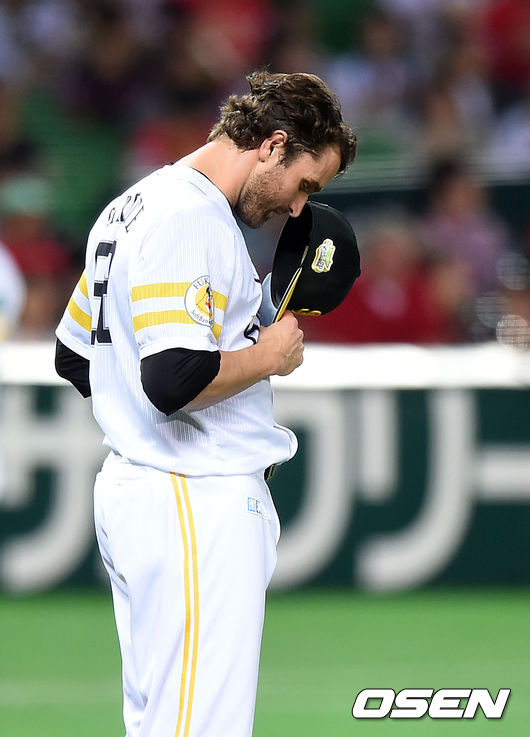 9회초 무사에서 소프트뱅크 데니스 사파테가 투구를 준비하고 있다.