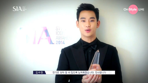 김수현이 28일 오후 서울 동대문 DDP에서 열린 2014 스타일 아이콘 어워즈(이하 2014 SIA)에서 본상을 거머쥐었다.