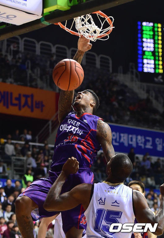 가르시아는 팽팽한 분위기를 오리온스쪽으로 확 끌어당기는 힘이 있다. 빅맨역할이지만 볼핸들링이 가드 못지않다. 상대 센터를 외곽으로 끌어낸 후 1 대 1로 제치고 꽂는 3점슛과 덩크슛이 백미다. 3점슛 성공률이 58.3%이니 던지지 말라고 할 이유가 없다.
