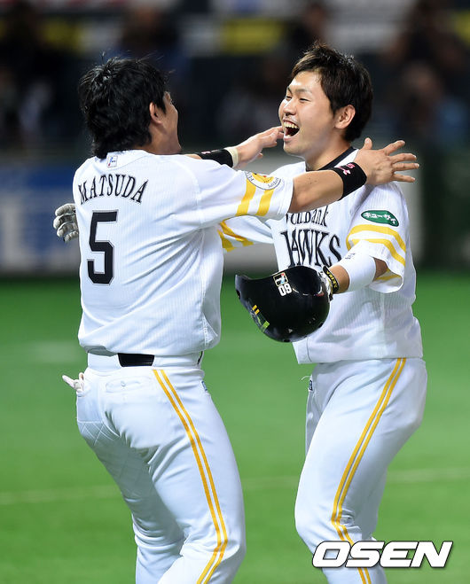 10회말 2사 1,2루에서 소프트뱅크 나카무라 아키라가 우월 스리런 홈런을 치고 환호하고 있다. /sunday@osen.co.kr