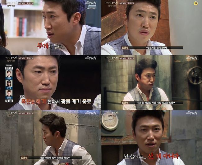 이 과정에서 장동민은 완벽한 각본으로 보는 이들의 감탄을 자아냈다. 우선 그는 게임의 승패를 좌지우지할 수 있는 필승 전략을 하나 알아냈다. 이는 광물에 섞여 있는 폭탄의 무게가 다르다는 것. 광부 조의 조원들이 폭탄을 세 개 뽑았을 경우 그대로 라운드가 종료되는 만큼 폭탄의 존재가 굉장히 중요해진 가운데 장동민은 유독 폭탄의 무게가 다르다는 사실을 알아차렸다.