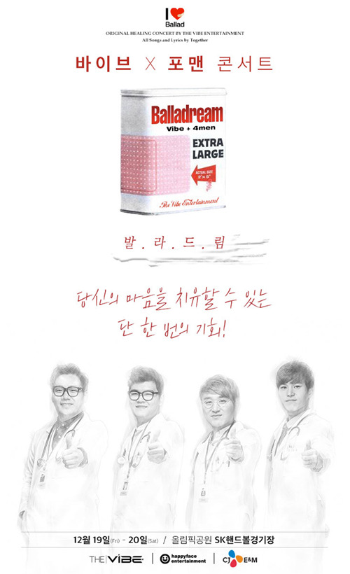 바이브와 포맨은 오는 12월 19~20일 양일간 서울 올림픽공원 SK핸드볼경기장에서 '2014 바이브 X 포맨 콘서트 [발라드림]'이라는 타이틀로 콘서트를 개최한다.