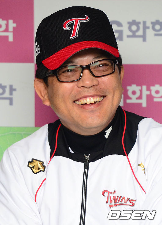 30일 오후 서울 잠실구장에서 열리는 2014 한국야쿠르트 세븐 프로야구 포스트시즌 플레이오프 3차전 LG 트윈스와 넥센 히어로즈의 경기 시작전 양상문 감독이 취재진들과 이야기를 나누며 미소를 짓고 있다.