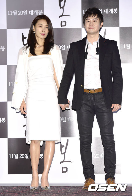 30일 오후 서울 성동구 CGV 왕십리점에서 열린 영화 '봄' 언론배급시사회에서 극중 부부 역을 맡은 배우 김서형과 박용우가 포토타임을 갖고 있다.