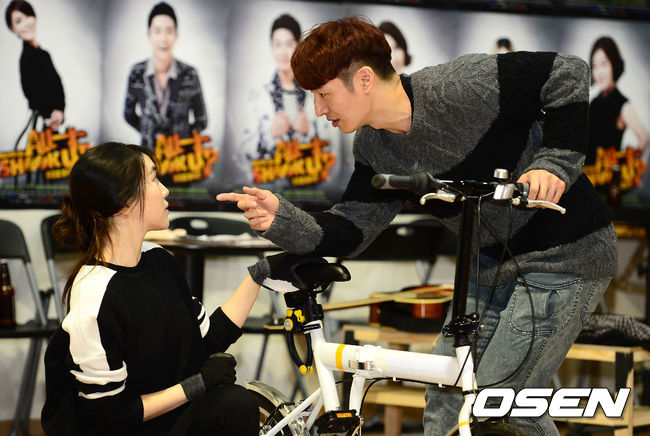 30일 오후 서울 종로구 아리온연습실에서 진행된 뮤지컬 '올슉업' 연습실 공개에서 정재은 손호영이 열연하고 있다.