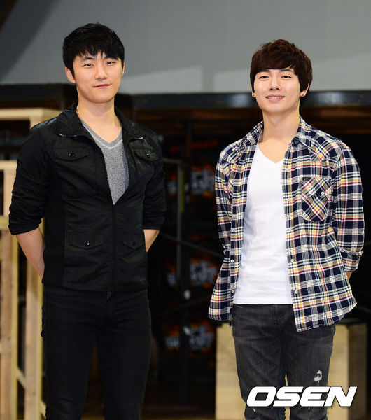 30일 오후 서울 종로구 아리온연습실에서 진행된 뮤지컬 '올슉업' 연습실 공개에서 김태윤 이우종이 포토타임을 하고 있다.