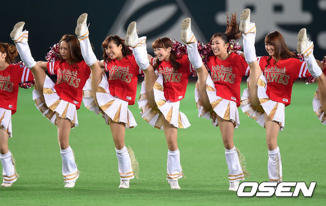 경기에 앞서 소프트뱅크 치어리더가 화려한 공연을 펼치고 있다.