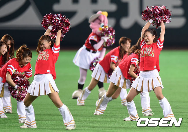 경기에 앞서 소프트뱅크 치어리더가 화려한 공연을 펼치고 있다.