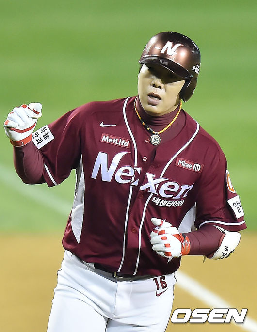 30일 오후 서울 잠실구장에서 열리는 '2014 한국야쿠르트 세븐 프로야구' 포스트시즌 플레이오프 3차전 LG 트윈스와 넥센 히어로즈의 경기, 2회초 1사 넥센 강정호가 리오단을 상대로 선취 솔로 홈런을 날린 후 그라운드를 돌고 있다.