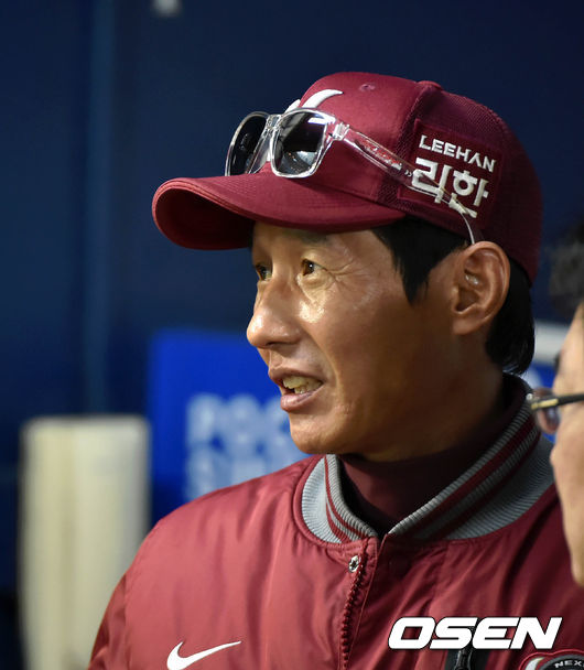 30일 오후 서울 잠실구장에서 열리는 '2014 한국야쿠르트 세븐 프로야구' 포스트시즌 플레이오프 3차전 LG 트윈스와 넥센 히어로즈의 경기, 염경엽 감독이 밝은 표정으로 경기를 지켜보고 있다.