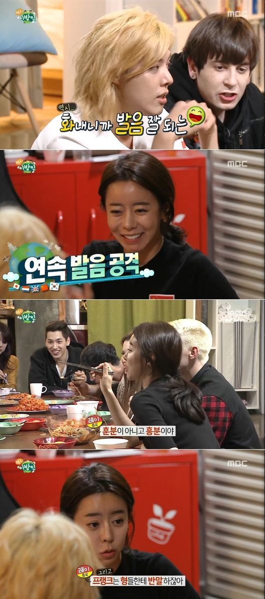 강남은 30일 오후 방송된 MBC 예능프로그램 '헬로! 이방인'(이하 '헬로이방인')에서 한국어를 잘 하는 레이에게 "글씨만 쓸 수 있느면 노(너)랑 나랑 비슷해"라고 말을 걸었다.