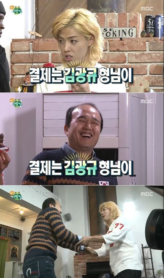 김광규는 30일 오후 방송된 MBC 예능프로그램 '헬로! 이방인'(이하 '헬로이방인')에서 강남의 공세에 말려 치킨 40마리를 쏘게 됐다.