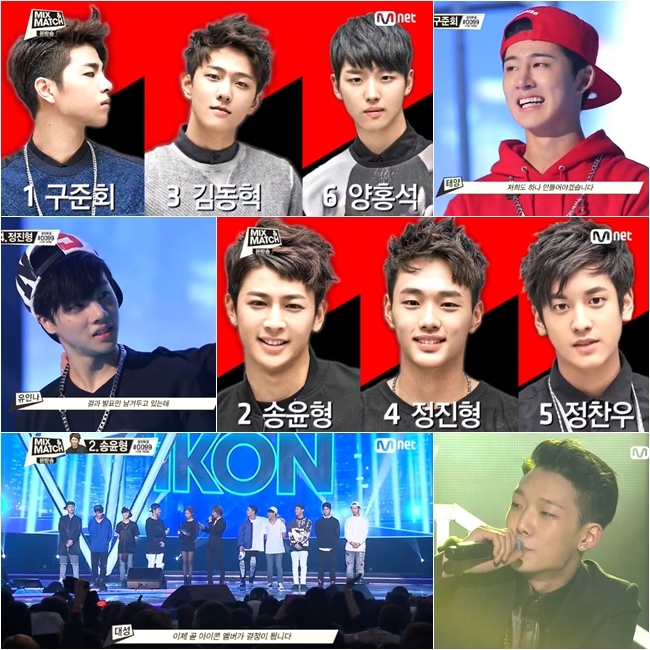 지난 30일 케이블채널 Mnet '믹스앤매치'에는 대성과 유인나의 진행 하에 파이널매치가 펼쳐졌다. 자유곡 매치, 자작곡 매치, 단체 댄스로 꾸며진 이날 파이널 매치에는 양현석 대표를 비롯, 빅뱅, 타블로, 2NE1, 위너가 참석해 아이콘의 탄생을 지켜봤다.