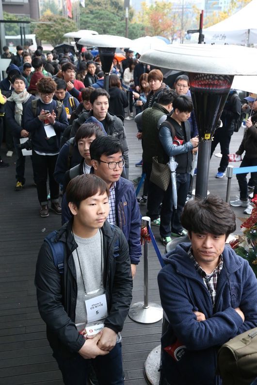 아이폰 6, 6 플러스에 대한 국내 고객들의 뜨거운 열기는 KT가 31일 오전 8시 광화문 올레스퀘어에서 개최한 출시 기념행사에서도 확인할 수 있었다.