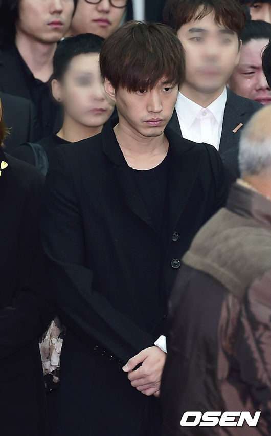 故 신해철의 발인식에 참석한 가수 타블로가 슬픔에 잠겨있다.