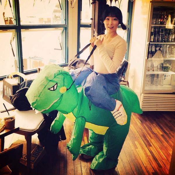 사유리는 지난 30일 오후 자신의 트위터를 통해 “이제 공룡타고 다녀요”라는 짧은 글과 함께 사진 한 장을 게재했다.