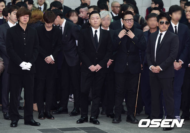 故 신해철의 발인식에 참석한 윤도현,타블로,싸이,윤종신,이승철이 슬픔에 잠겨있다./ greenfield@osen.co.kr