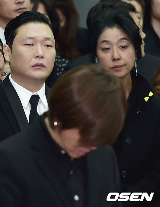 故 신해철 발인식에 참석한 싸이,김부선,윤도현이 슬픔에 잠겨있다./ greenfield@osen.co.kr