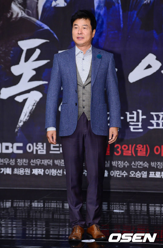 31일 오후 서울 상암동 MBC 상암 신사옥에서 열린 MBC 새 아침드라마 '폭풍의 여자' 제작발표회에서 선우재덕이 포토타임을 갖고 있다.