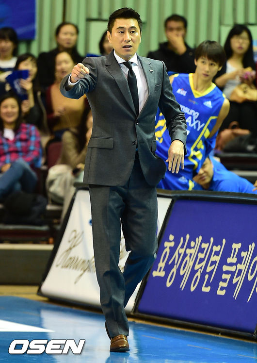 1쿼터, 삼성 이상민 감독이 작전을 지시하고 있다.