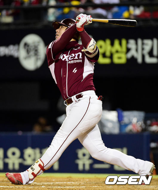 7회초 넥센 공격 1사 1루 상황 강정호가 좌월 투런포를 날리고 있다.