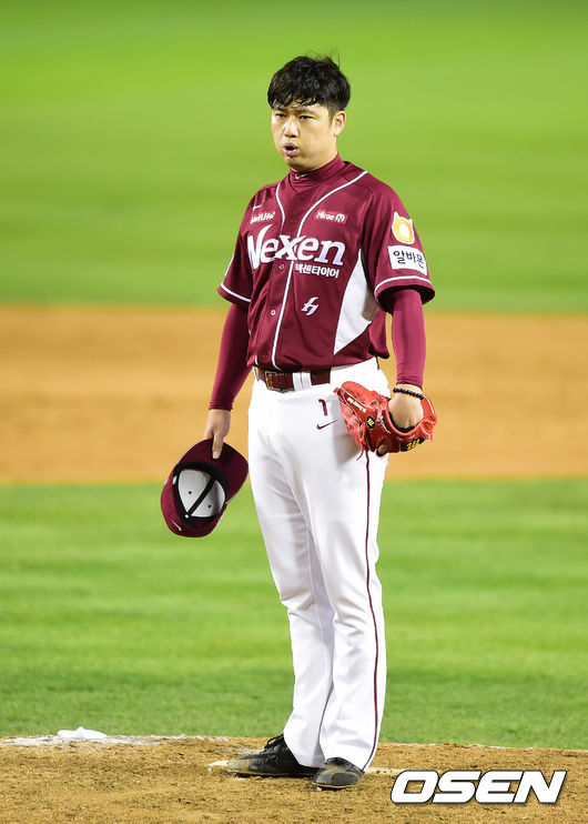31일 오후 서울 잠실구장에서 열린 2014 한국야쿠르트 세븐 프로야구 포스트시즌 플레이오프 4차전 LG 트윈스와 넥센 히어로즈의 경기, 9회말 마운드에 오른 넥센 손승락이 심호흡을 하고 있다.