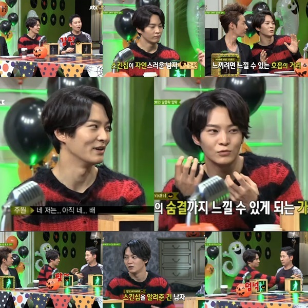 스킨십에 대한 사연을 듣고는 MC들이 어깨에 기대는 것을 그린라이트로 볼 수 없다는 의견이 많았지만 주원은 “내 옛날 기억으로는 어깨에 기대면 서로의 숨결을 느낄 수 있다”는 생각을 표현했다.