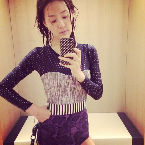 공개된 사진 속 한지혜는 탈의실안의 거울을 통해 비친 자신을 휴대폰 카메라를 통해 찍고 있는 모습이다. 특히 그는 도트와 스트라이프, 꽃무늬가 섞인 패턴의 독특한 수영복으로 패셔니스타의 면모를 뽐내 보는 이들의 시선을 사로잡고 있다.