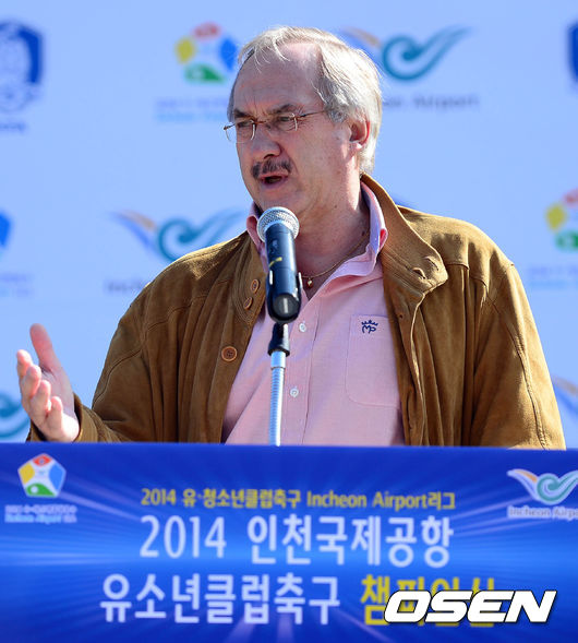 1일 오후 인천국제공항공사 인재개발원 축구장에서 열린 2014 인천국제공항 유소년클럽축구 챔피언십 개막식에서 슈틸리케 감독이 인사말을 하고 있다.