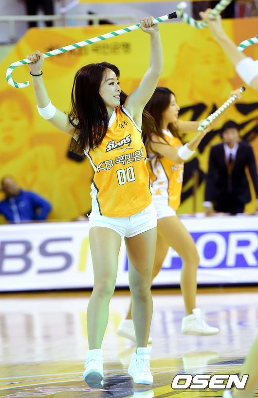 KB 스타즈 치어리더들이 멋진 공연을 펼치고 있다.