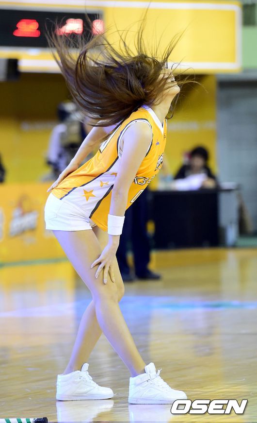 KB 스타즈 치어리더들이 멋진 공연을 펼치고 있다.
