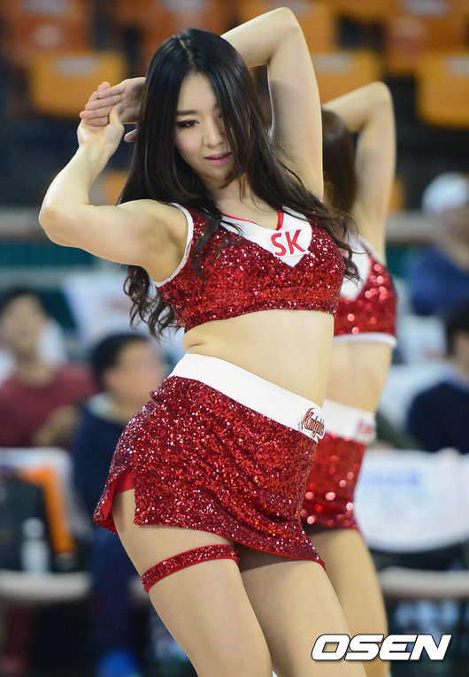 1일 오후 서울 잠실학생체육관에서 열린 '2014-2015 KCC 프로농구' 서울 SK와 고양 오리온스의 경기 시작전, 치어리더들이 공연을 펼치고 있다.