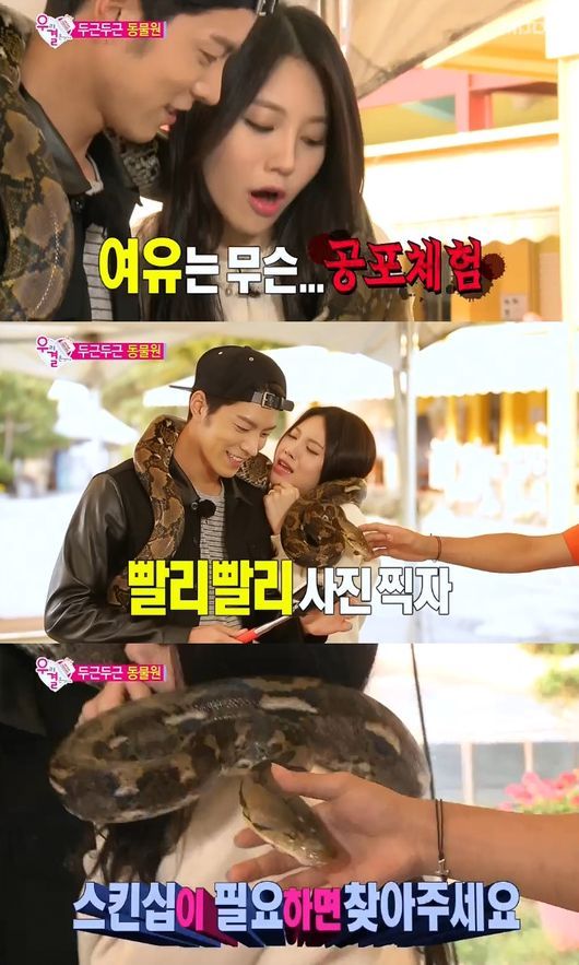 [OSEN=정소영 인턴기자] '우결' 홍종현과 유라가 뱀 두르기 체험에 나섰다.