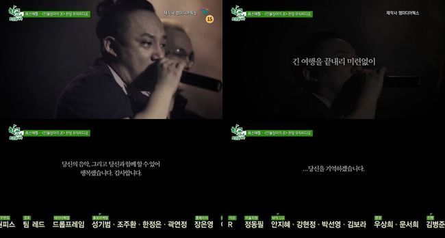 이날 모든 방송이 끝난 후 '학교' 측은 "故신해철-'민물장어의 꿈' 헌정 뮤직비디오"라는 제목으로 뮤직비디오를 내보냈으며 가사 중 한 부분인 '긴 여행을 끝내리 미련없이'라는 가사를 띄웠다.