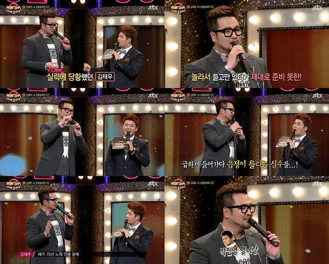 김태우는 1일 오후 방송된 JTBC '히든싱어 시즌3(이하 '히든싱어3')'에서 "놀라서 음정을 틀렸다"고 말했다.