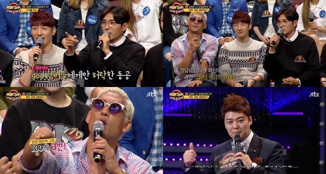god의 박준형, 손호영, 데니안은 1일 오후 방송된 JTBC '히든싱어 시즌3(이하 '히든싱어3')'에서 김태우를 정확히 찾아냈다.