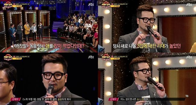 김태우는 1일 오후 방송된 JTBC '히든싱어 시즌3(이하 '히든싱어3')'에서는 "'거짓말' 녹음할 때 힘들었다"고 밝혔다.