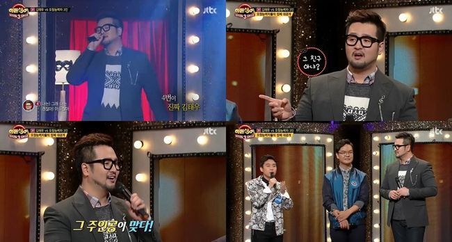 김태우는 1일 오후 방송된 JTBC '히든싱어 시즌3(이하 '히든싱어3')' 3라운드에서 단 3표만을 받으며 단독 1등을 차지했다.