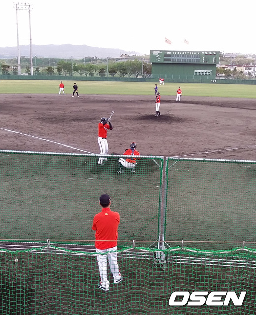 보통 라이브 훈련은 스프링캠프 중반부터 시작하는 게 일반적이다. 그런데 한화는 김성근 감독 부임과 함께 이례적으로 마무리캠프 때부터 라이브 훈련을 실시하고 있다. 물론 주력 선수들보다는 그동안 많이 못 뛴 1.5군이나 2군 선수 위주로 구성됐지만 실전을 방불케 하는 열기로 후끈 달아올랐다.