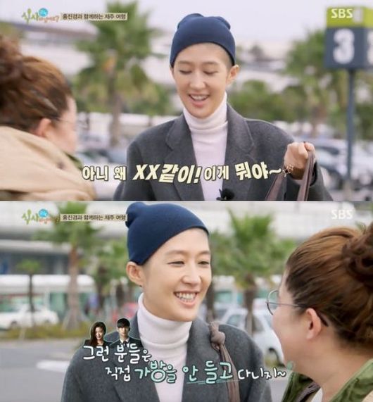 이영자는 2일 오전 방송된 SBS '잘 먹고 잘 사는 법-식사하셨어요'에서 제주 공항에 첫 등장한 홍진경을 향해 "거지 같이 이게 뭐냐!"고 말해 웃음을 자아냈다.