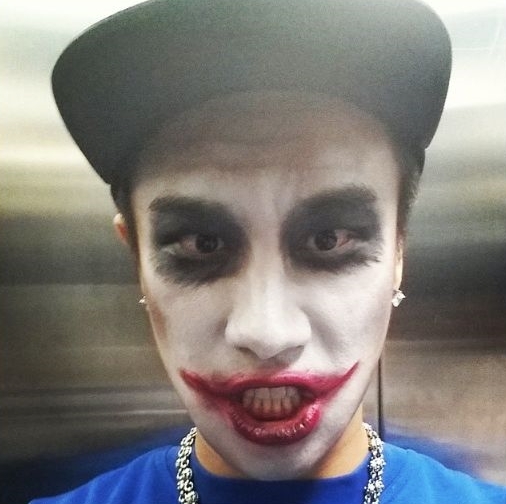 공개된 사진 속 산이는 흰 얼굴에 시커먼 눈두덩이, 찢어진 빨간 입으로 완벽한 ‘조커’ 분장을 선보이고 있다. 특히 미세한 이마 주름과 표정까지 비슷하게 표현해 눈길을 끌었다.