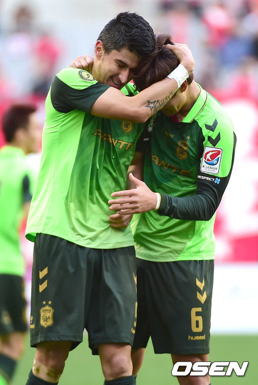 후반 종료 직전 전북 카이오가 극적인 결승골을 터트린 뒤 최보경과 기뻐하고 있다./dreamer@osen.co.kr
